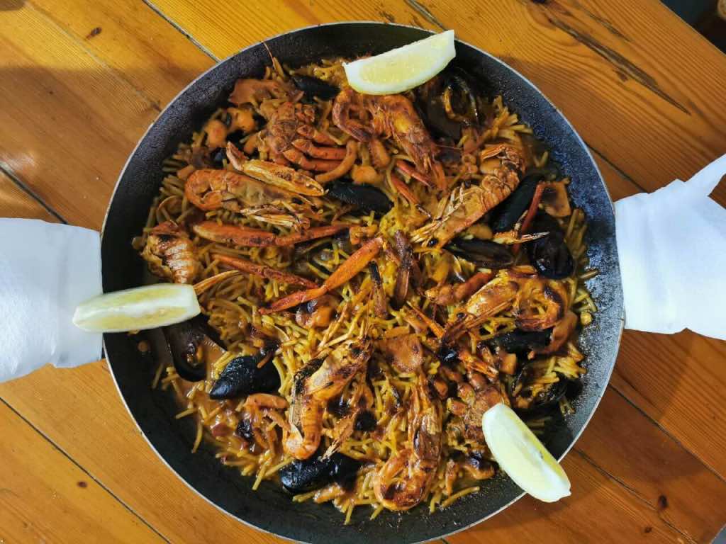 Pourquoi ne pas essayer une fideuá de marisco ?. C’est la aussi un plat très réputé en Espagne. Une paella au fruits de mer mais avec des fideuas (pâtes, style gros vermicelle) à la place du riz. Un véritable délice